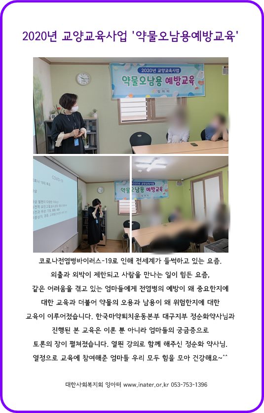 [±³À°] ±³¾ç±³À°»ç¾÷ '¾à¹°¿À³²¿ë¿¹¹æ±³À°'