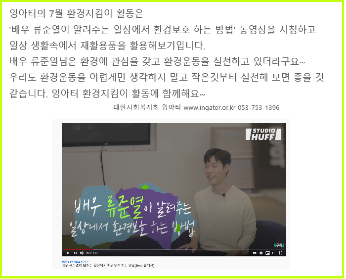 '¹è¿ì ·ùÁØ¿ÀÌ ¾Ë·ÁÁÖ´Â Àϻ󿡼 ȯ°æº¸È£ ÇÏ´Â ¹æ¹ý' µ¿¿µ»ó ½ÃûÇϱâ
