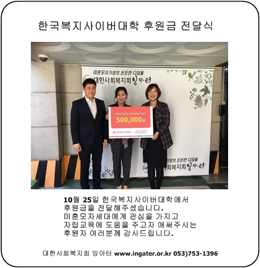 [ÈÄ¿ø] Çѱ¹º¹Áö»çÀ̹ö´ëÇÐ ÈÄ¿ø±Ý Àü´Þ½Ä
