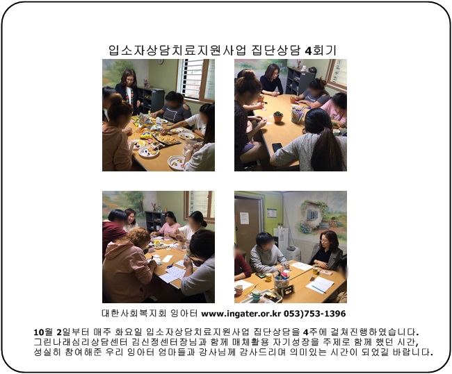 | [±³À°] ÀÔ¼ÒÀÚ»ó´ãÄ¡·áÁö¿ø»ç¾÷ Áý´Ü»ó´ã 4ȸ±â ÁøÇà |